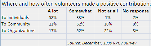Peace Corps ImpactImpact of Peace Corps service from comments by returned volunteers in December, 1996 study